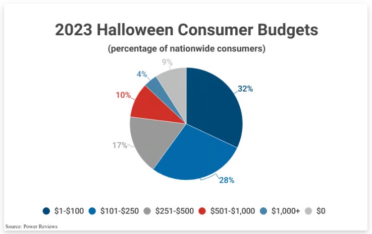 在万圣节购物中,装饰品也是三大热门商品之一,有75%的家庭都会购买装饰品。据调查显示,71%的美国人对2023年万圣节装饰品的预算在100美元,有22%的人预算为零。
