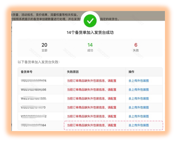 如果因商品标签原因被拒收,请立即联系您的发货人员补齐/更正后续发货商品的标签