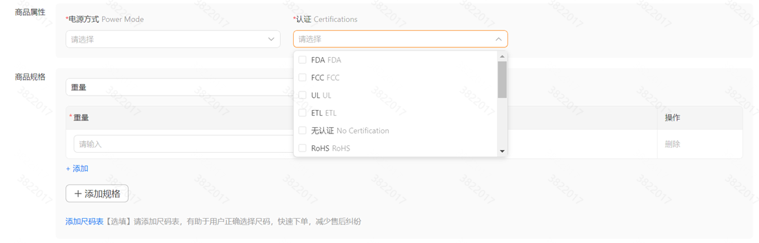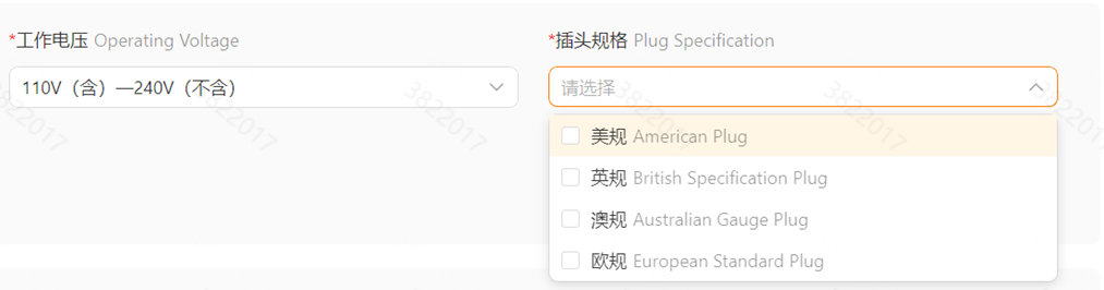 - 系统根据插头规格,上架到对应国家,如选择了美规,则上架售卖到美国,选择了澳规欧规,则上架售卖到澳洲欧洲市场