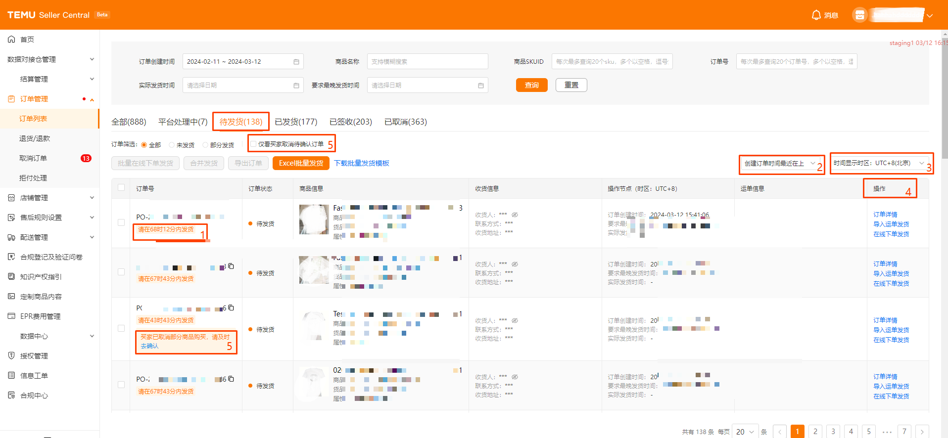 (5)在待发货状态下,存在消费者取消部分商品情况(图示5),系统将在订单列表标识,并支持快速筛选出对应订单;